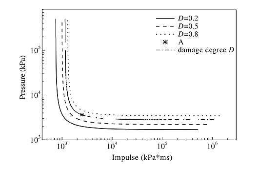 در این روش که دقتی بیشتر از روش مسیر جایگزین دارد، ابتدا، مکان و میزان ماده منفجرهی لازم برای تخریب المانهای هدف، بر اساس نمودار فشار-ضربه ارائه شده (شکل ۵) یا استفاده از سایر مراجع معتبر تعیین میشود. پس از آن، تأثیر انفجار بر سایر المانها بررسی، جابهجایی و متناسب با آن خرابی المانها با استفاده از مدلی با یک درجه آزادی تحلیل میشود. این آسیبها از طریق کاهش مشخصات مکانیکی مصالح، در مدلسازی لحاظ میگردد. در نهایت، المانهای کاملا تخریبشده از مدل حذف و تحلیل دینامیکی نهایی با اعمال اثرات مربوط به آسیبها و شرایط اولیهی مذکور بر روی سازه انجام میگیرد.