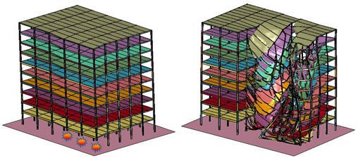 در این روش تحلیلی، ابتدا المانهای اصلی سازه که احتمال میرود تحت تأثیر مستقیم نیروهای ناشی از انفجار قرار گیرند، از مدل حذف میشوند و سپس، شرایط و پایداری سازه بدون در نظر گرفتن مشارکت این المانها مورد ارزیابی قرار میگیرد. با این حال، این رویکرد که مبتنی بر سادهسازی است، چندین عامل حیاتی را که در فرآیند واقعی تخریب نقش دارند، لحاظ نمیکند؛ این عوامل عبارتند از: آسیبهای اولیۀ ناشی از موج انفجار، اثرات متقابلی که تخریب المانهای حذفشده بر رفتار و باربری سایر اجزای سازه بر جای میگذارد، و همچنین فرآیند دینامیکیِ انهدام المانهای مذکور و اعمال نیروی ناشی از برخورد آنها به سازه، پدیدهای که خود موجب جابهجایی در کل سیستم سازهای میشود.