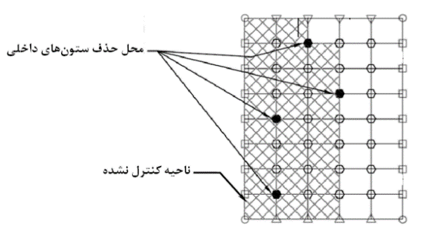 شکل 3 - موقعیت ستونهای خارجی که برای تحلیل باید حذف شوند.